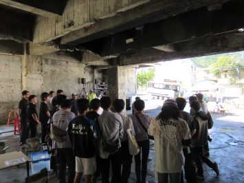 毎年8月に実施している“みなかみスタディツアー”の社会コースでは、水上温泉街再生プロジェクトに中心的にかかわるみなかみ町や東京大学大学院都市デザイン研究室と関係を構築していく中で、これらが主催するマルシェ(2025.10.11-12 ミナカミ・ミライ・マルシェ-水上温泉 廃墟再生ストーリーズ2025-)に本校の生徒たちも参加させていただくこととなりました。一泊二日(10月11~12日)で温泉街に滞在し、大学院の学生たちと共同で、温泉街を舞台に展開される社会実験に関するアンケート調査や聴き取り調査を実施しつつ、地域の方々、来訪者との交流を楽しみました。もちろん、海城独自の調査も実施させていただき、多くの回答を集めることができました。今回参加した生徒たちは進路選択が迫られている高校一年生ということもあり、活動の合間に大学院の学生たちに大学でも学びや進路について相談する光景も見られました。