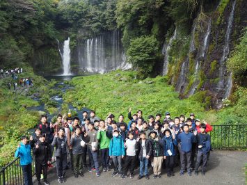 白糸の滝の前で記念撮影。