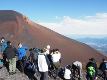 ・今回は五号目から歩いて行きましたが、富士山とは思えない、まるで火星にあるかのように赤褐色の火口が印象的でした。また、富士山に登っている最中にたくさん玄武岩やスコリアなどが落ちていましたが、それが全て世界遺産の岩石と考えると岩石の見え方が変わってきました。