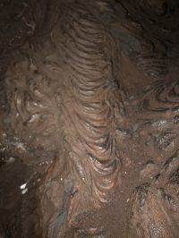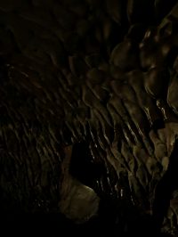 ・ 入ってみると真っ暗で、少し壁が濡れており怖かったですが、小腸部や肋骨など、神秘的な形の石を見て、なぜこのような形の石ができたのだろうかと考えさせられました。洞窟から出た時は服は汚れてしまいましたが、清々しい気持ちになって、先生が言っていたように生まれ変わったきがしました。