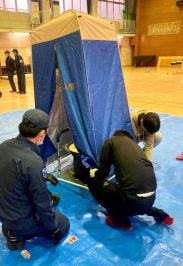 12月14日(日)、お向かいの戸山小学校で行われた避難所運営管理訓練に、生徒会執行部の高校生3名が参加しました。