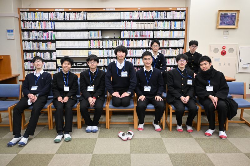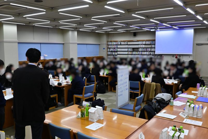 コロナ禍で開催できなかった時を経て、昨年、7月に再開後、学習院高等科、本郷高校、城北高校、そして今年度1学期は学習院高等科、2学期が本校での開催。14校、総勢61名が13のテーブルに分かれ、本校図書委員がまとめたレジュメを元に話を進めました。