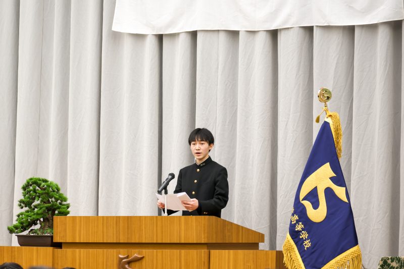 校長先生は式辞の中で、自作の詩『道の端を歩く人』を朗読して卒業生の門出を祝福しました。